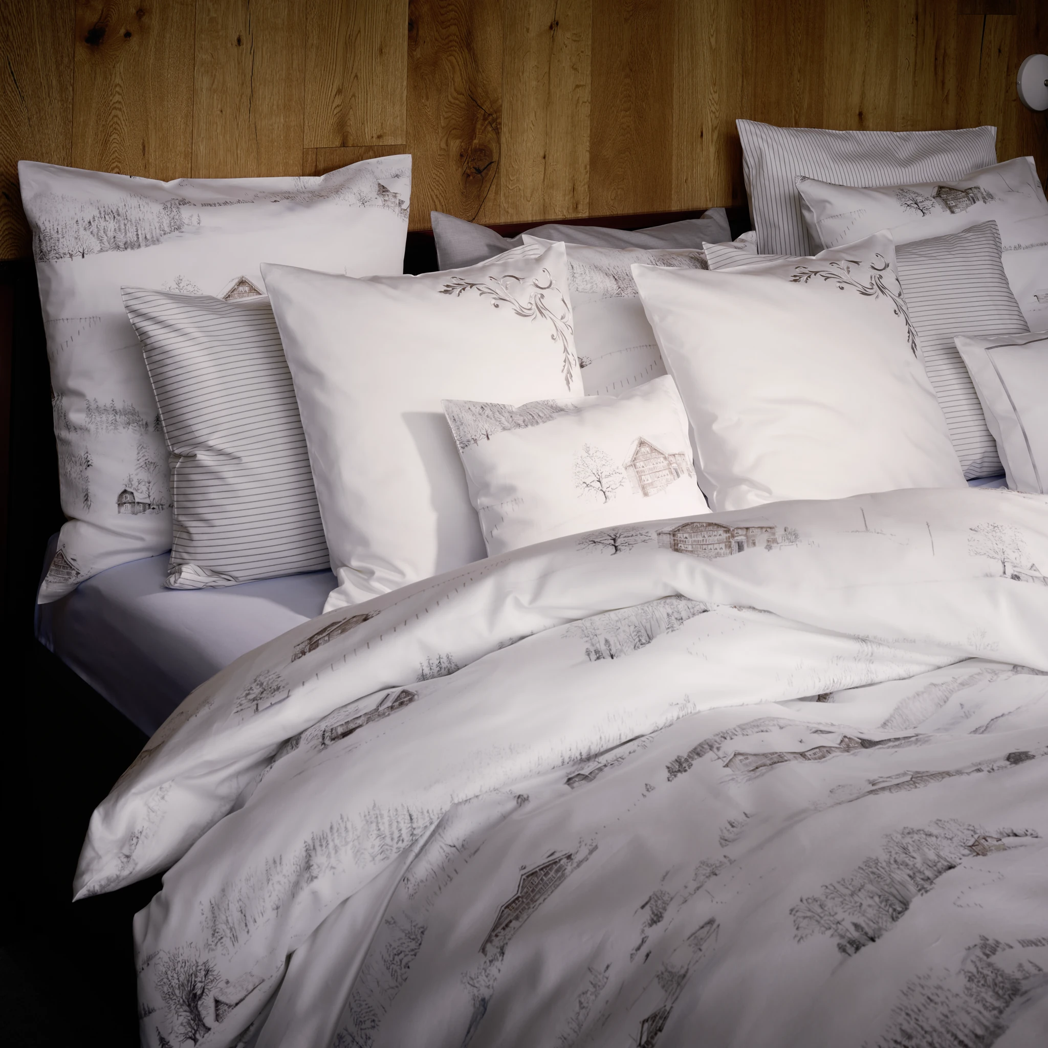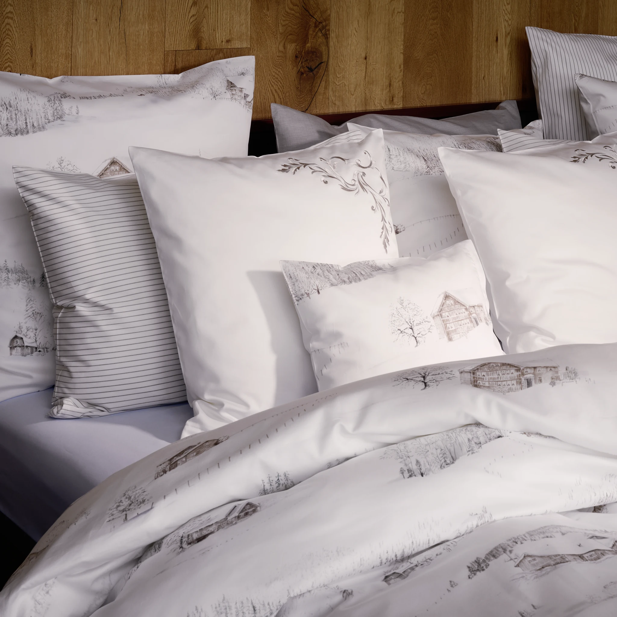 Die Christian Fischbacher Bettwäsche White Season lädt durch die winterliche Motivik zum Kuscheln ein.