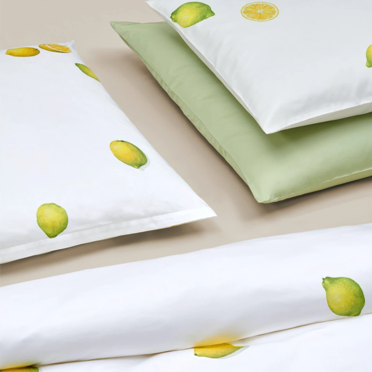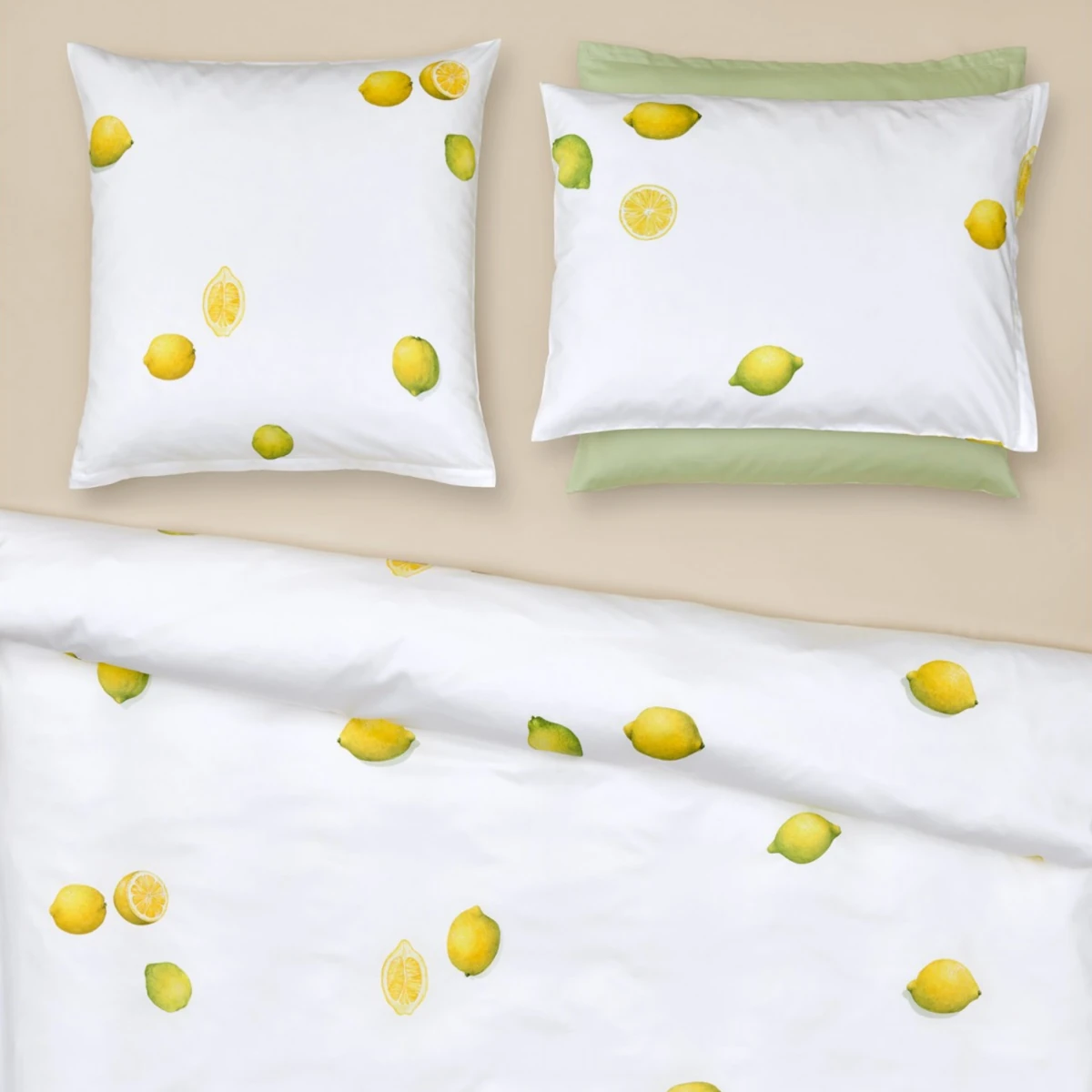 Die Decken- und Kissenbezüge der Christian Fischbacher Bettwäsche "Zitrone" werden mit Reißverschluss konfektioniert.