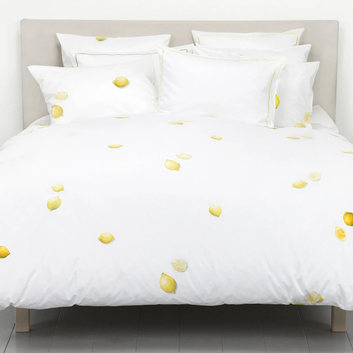 Diese wunderschöne Christian Fischbacher Bettwäsche "Zitrone" ist ein neu aufgelegtes Dessin, was es schon einmal unter dem Namen "Lemon" gab und zu einem der erfolgreichsten Fischbacher Designs gehört. Detaillierte Zitronen verleihen der Christian Fischbacher Bettwäsche „Zitrone“ eine besondere frische Note. Der weißgrundige, feine Baumwollsatin mit edlem Druck macht das Dessin zu einem verspielten, sonnigen Klassiker, der Frische und Leichtigkeit ins Schlafzimmer bringt. Gönnen Sie Ihrem Gemüt und Ihrem Zuhause einen satten Vitaminschub.